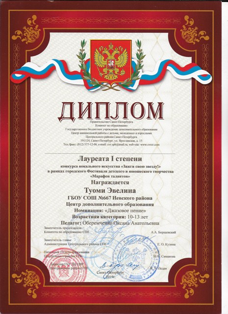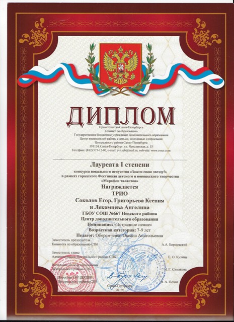 Вокальный ансамбль "Невские соловушки" лауреат II степени.